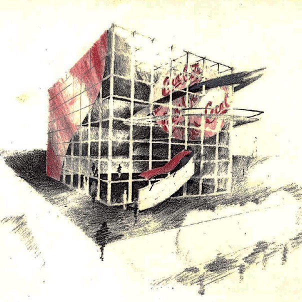 The design is a combination of three basic elements reflecting the image Coca-Cola’s image. They comprise the grid-universal and three dimensional structural frame; the sphere—inserted in the grid as a complete volume; and the wave--a path meandering through the structure.